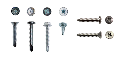 - DIN 7504K / UNI 8117: Tornillo autoperforante con cabeza hexagonal, utilizado para fijaciones en chapas y estructuras metálicas.